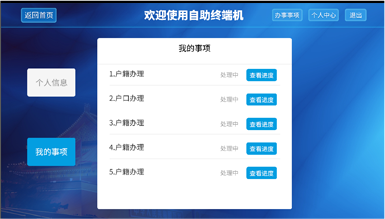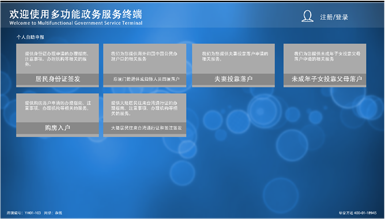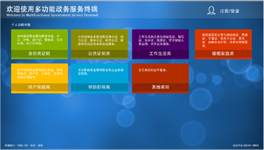 以整合“政務信息化”為基礎,通過自助服務一體機,延伸“政務信息化”的服務內容和擴大覆蓋范圍,與現有的各政務系統(tǒng)做對接,實現身份認證、指紋采集、資料打印、無人自助導向服務、辦事進度查詢、政務公開宣傳、各類繳費業(yè)務、材料自助收取流轉等事項辦理。根據不同單位的需求,政務自助機可以設置不同的業(yè)務功能,做到全程自助化。